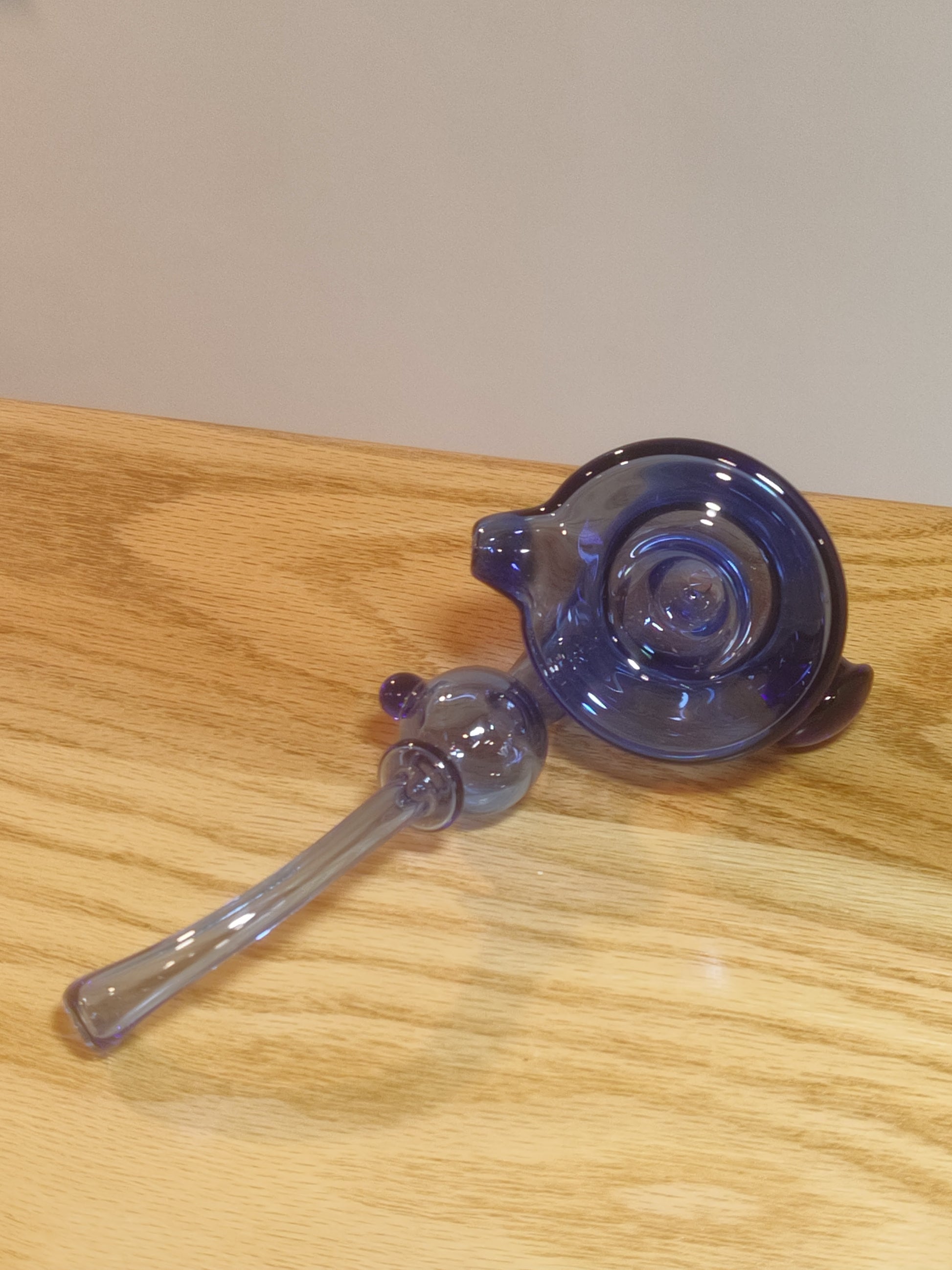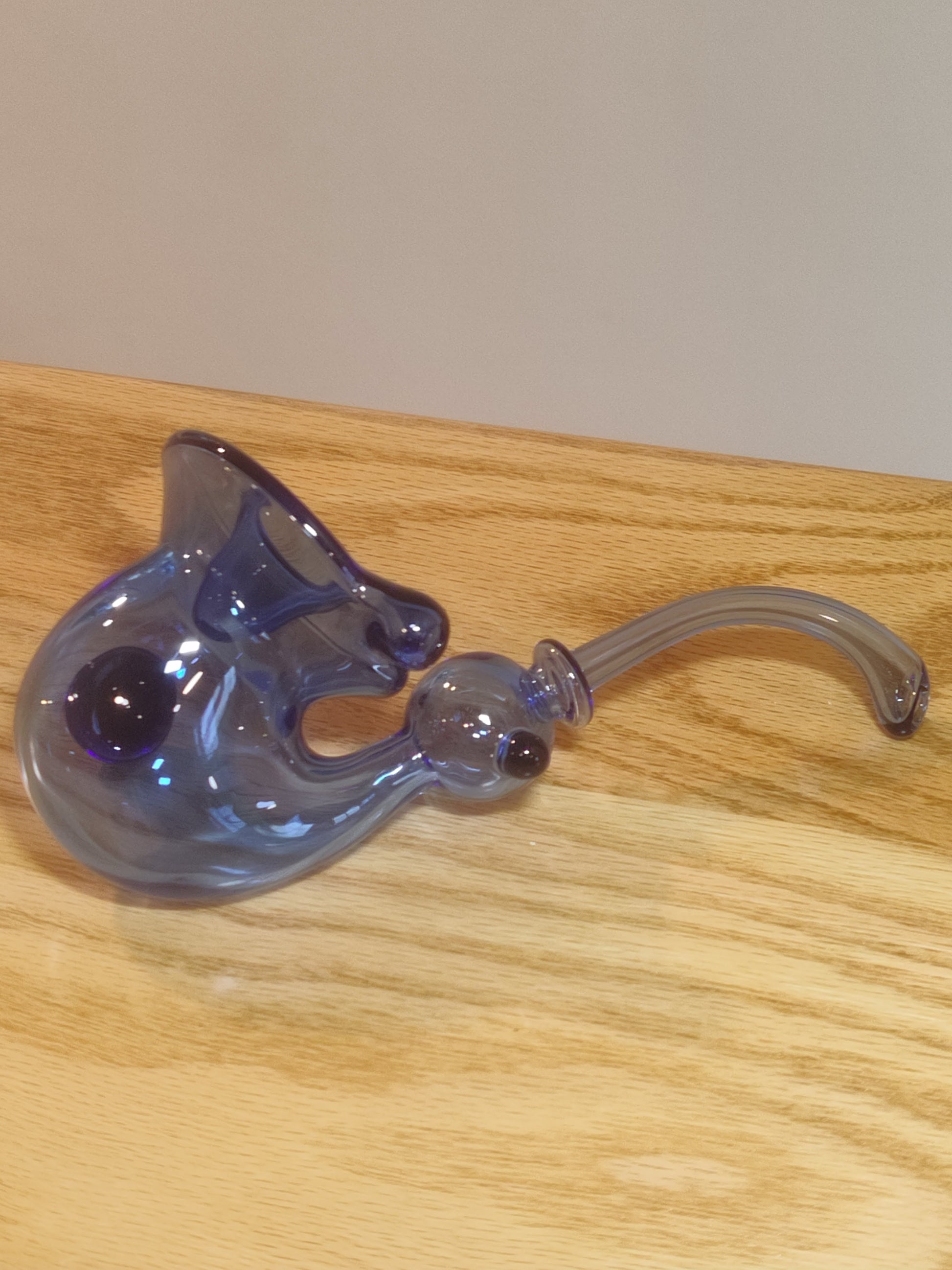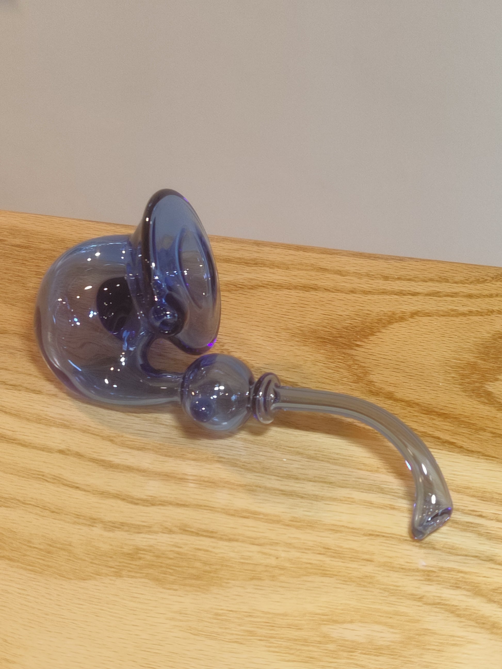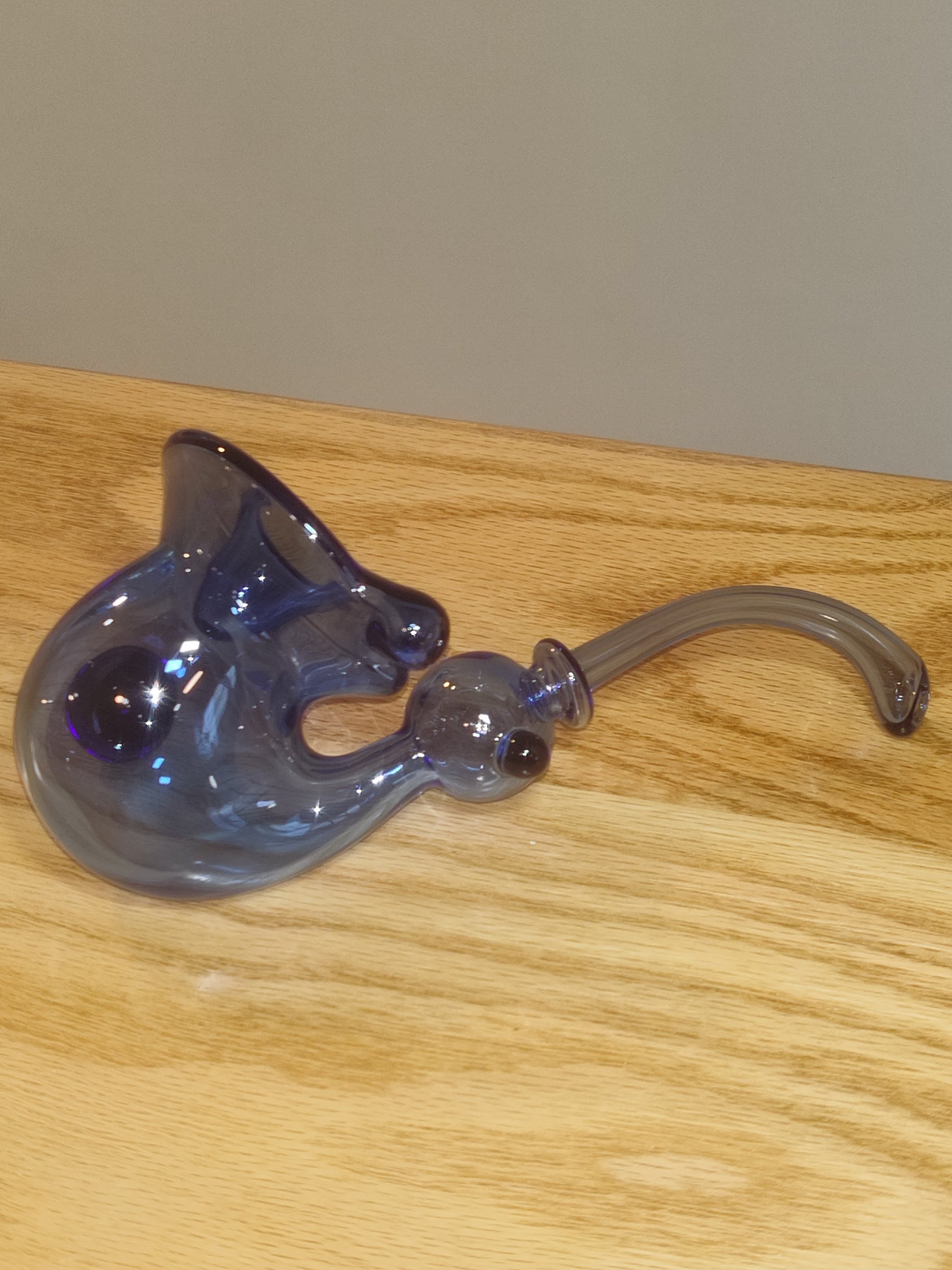 Handmade handblown sherlock smoking pipe by Massachusetts artist David Colton. Light blue color. Unique contemporary style. Signed 2025 by the artist.