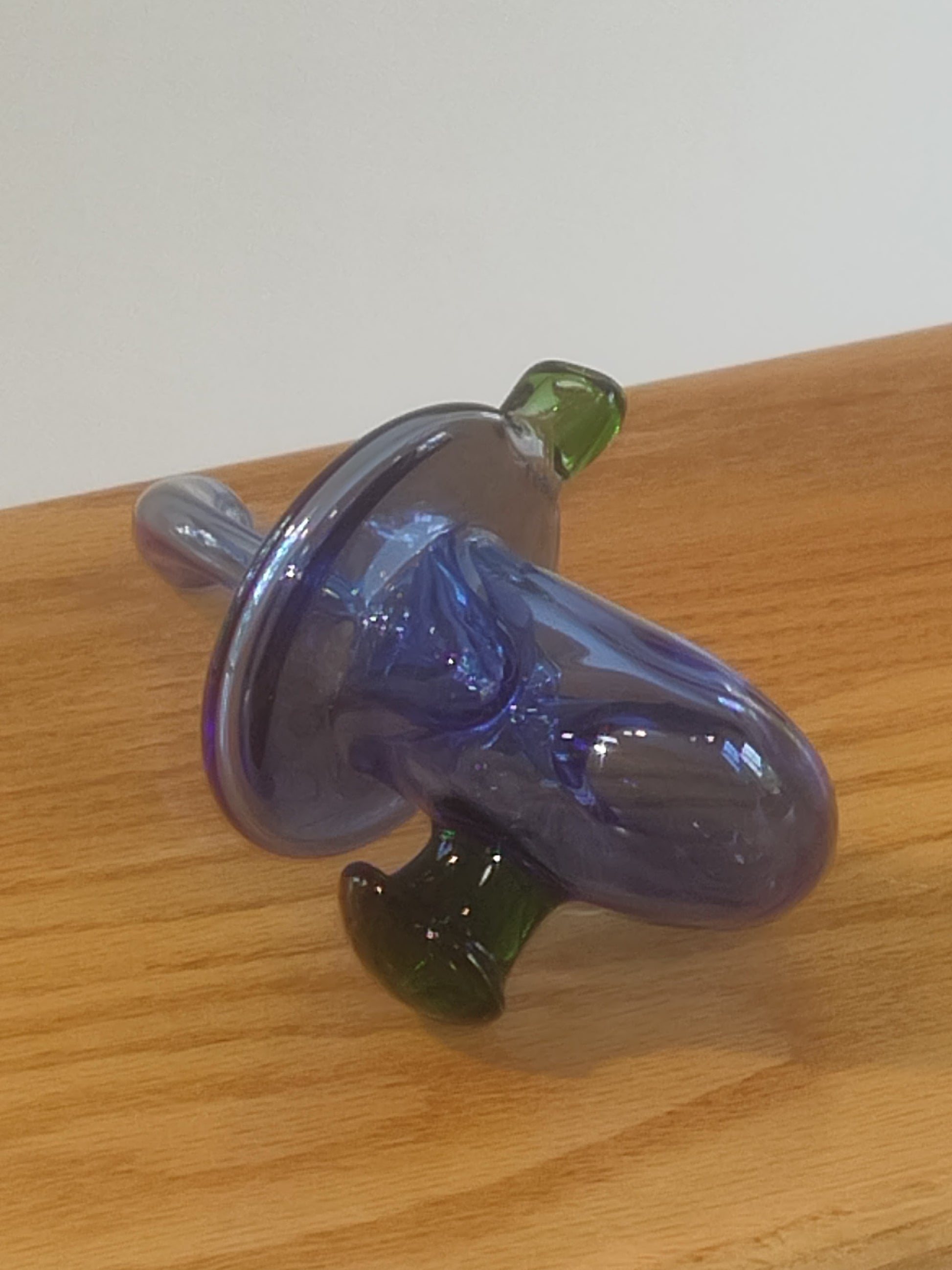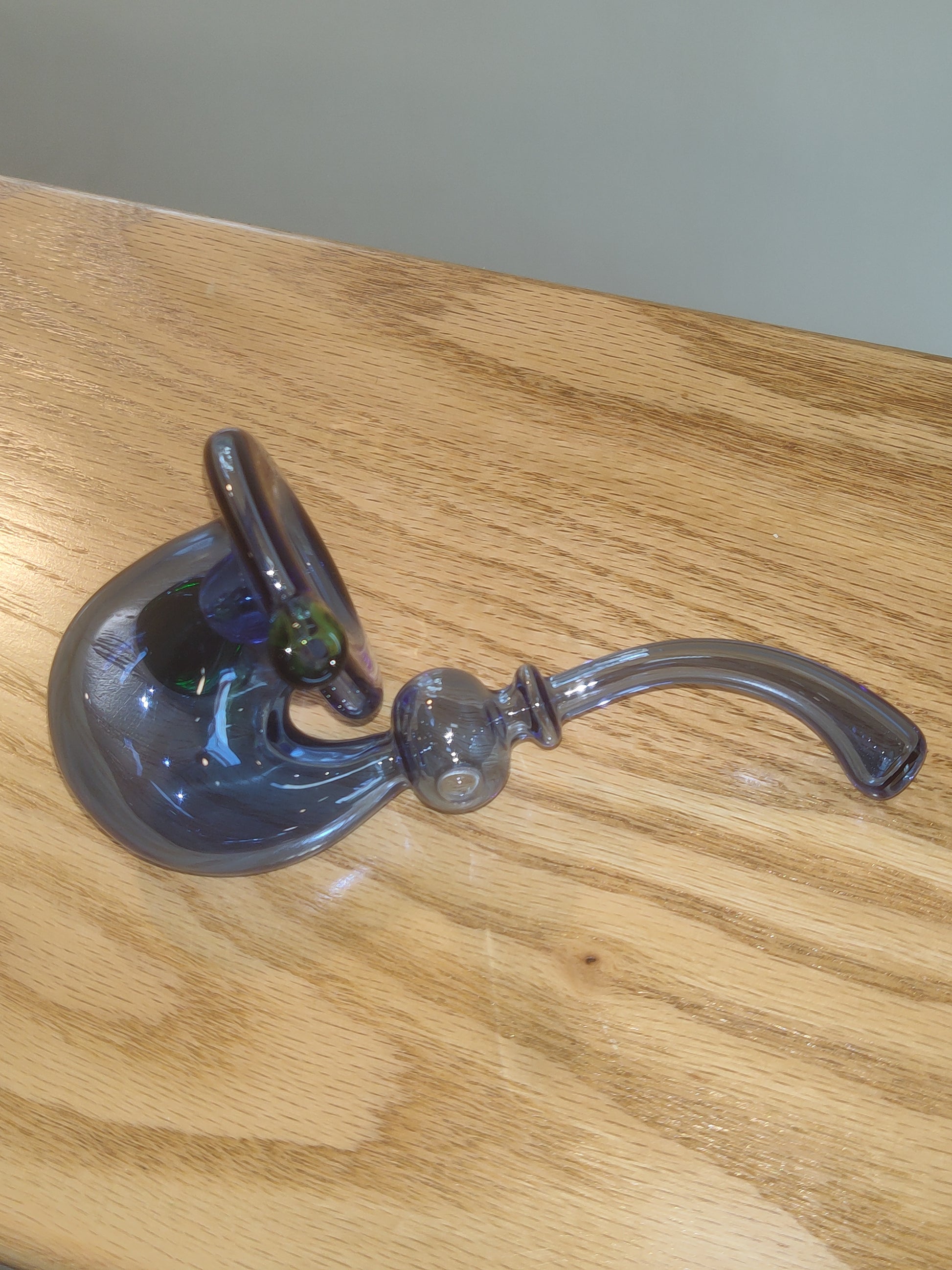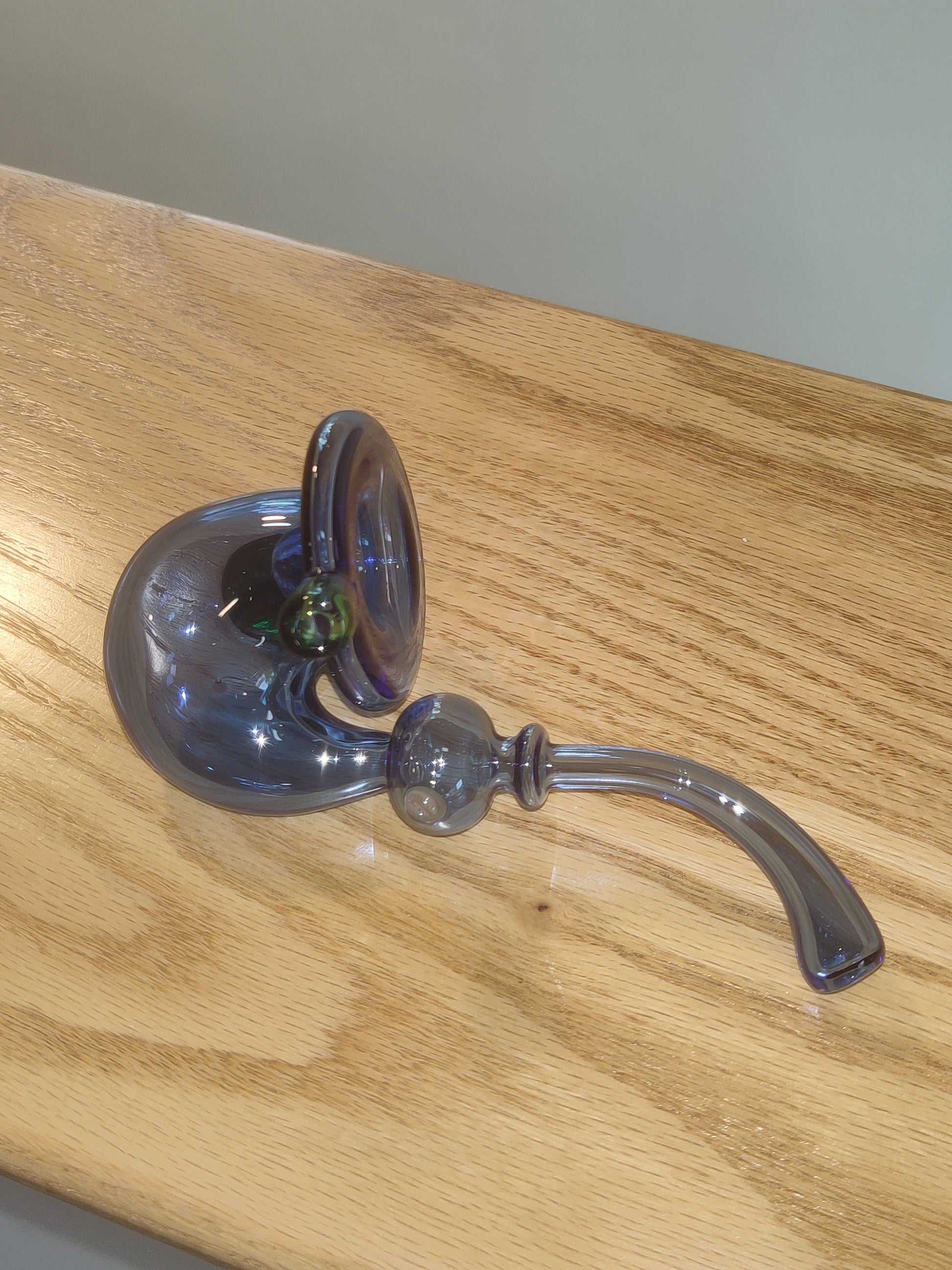 Handmade handblown sherlock smoking pipe by Massachusetts artist David Colton. Light blue color, Unique contemporary style. Green kickstand accent. Signed 2025 by the artist.